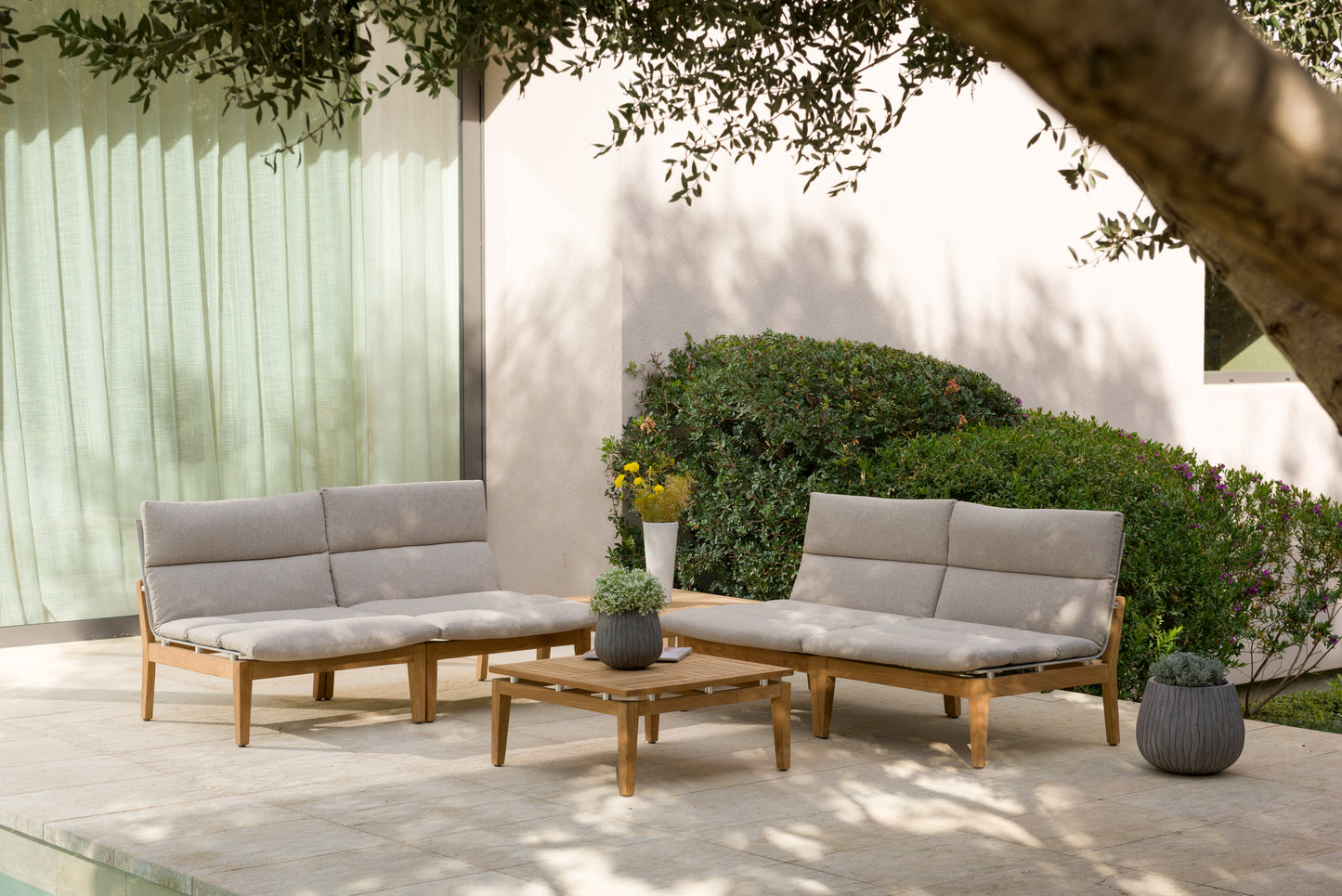 Whether for a patio or a balcony, the Arno modular chair is a must-have due to its endless combinations and functionality. Consisting of stunning FSC teak in combination with beautiful coral sanded colour cushion that sets an idyllic atmosphere to your outdoor living, the Arno modular chair is made to provide the comfort you need. Its design is timeless and elegant, and the Arno is great for creating a lounge-like or coffee setup – depending on your needs.