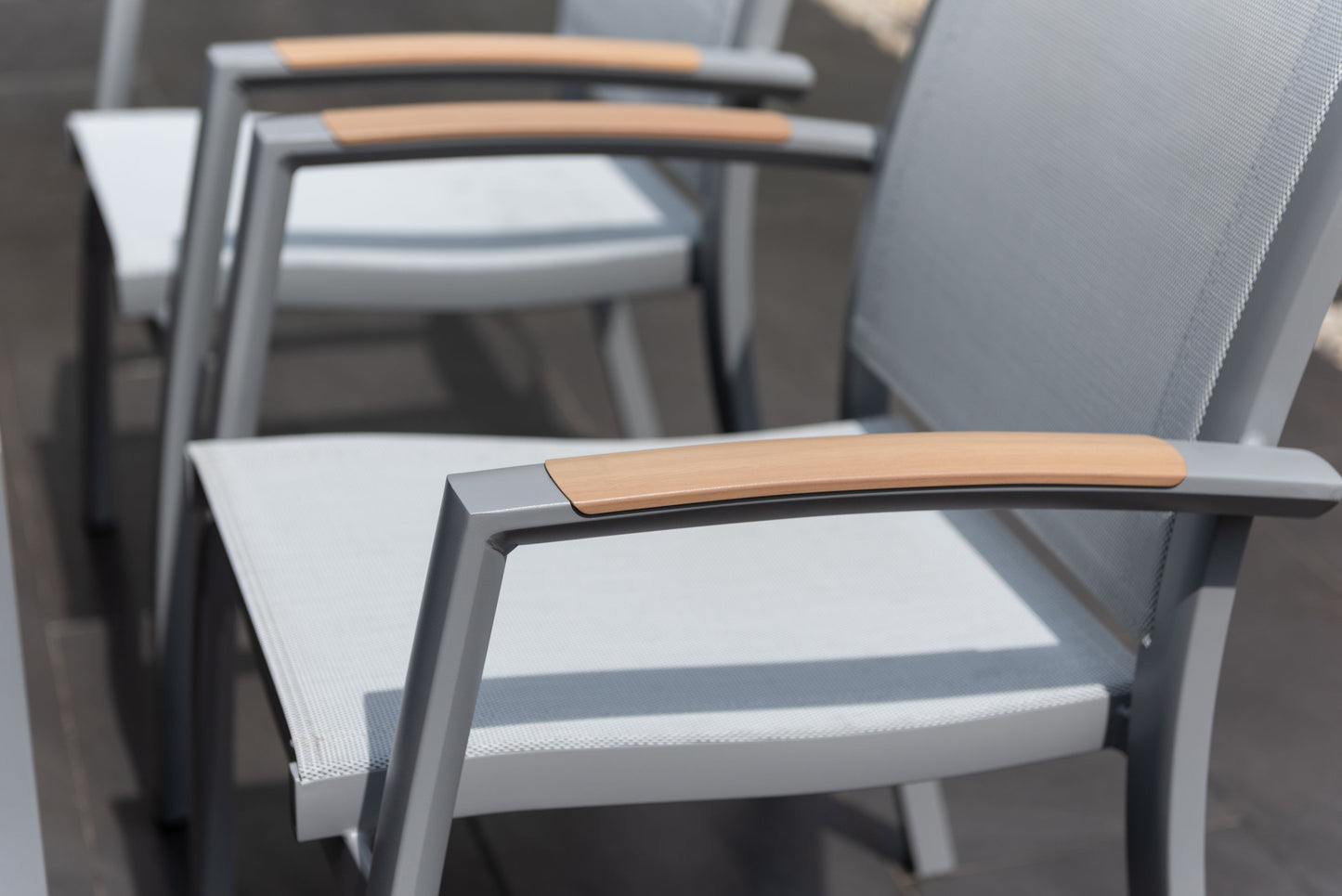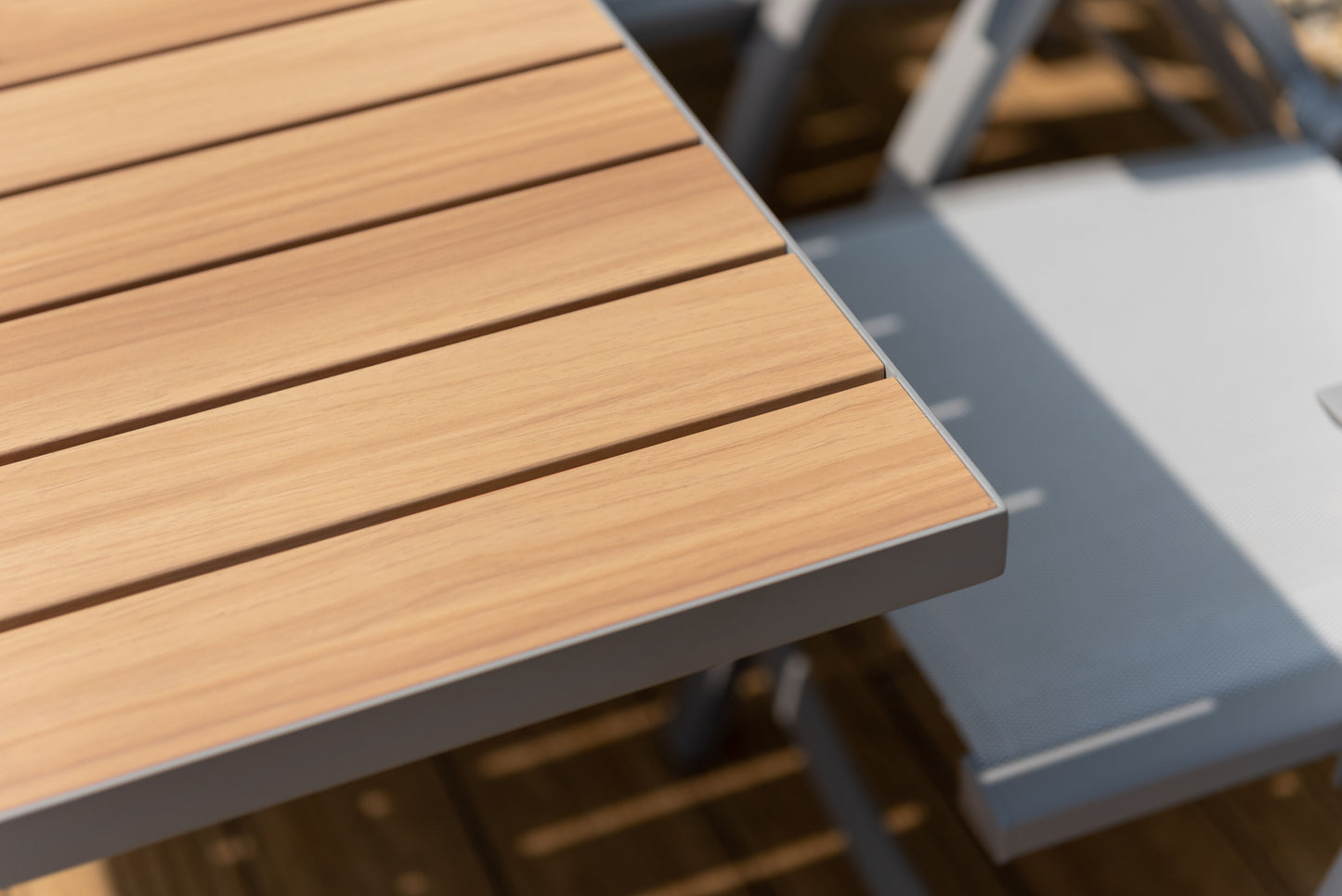 An excellent option for any dining space, the Panama dining set is made fully in aluminium, but has a beautiful AluPrint finish that gives the slats on the table top a very natural and warm look. No hassle, all style.