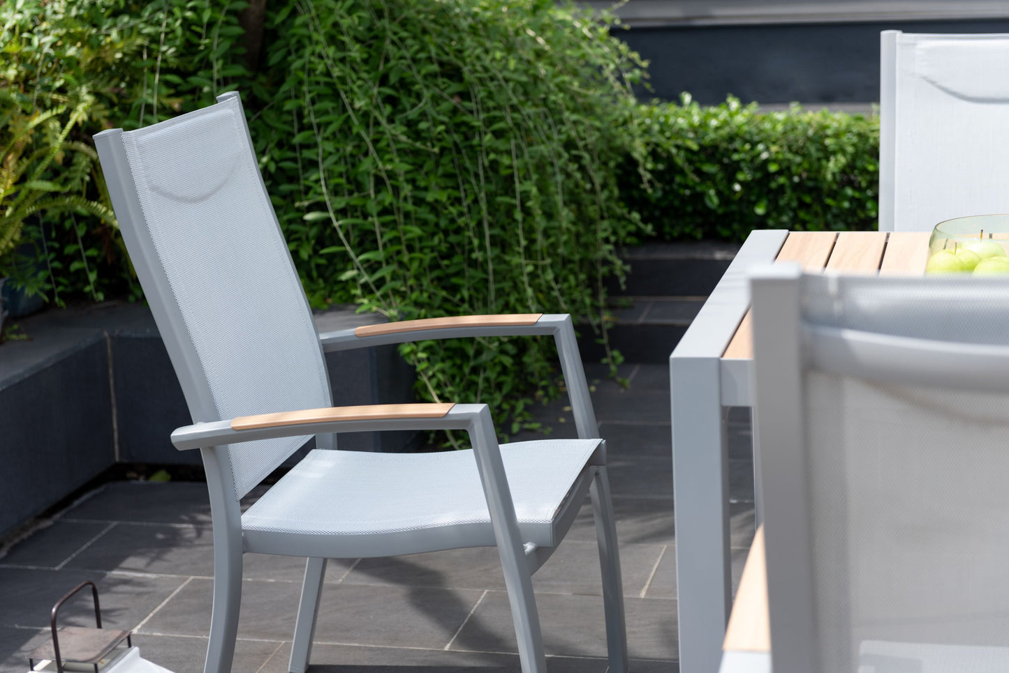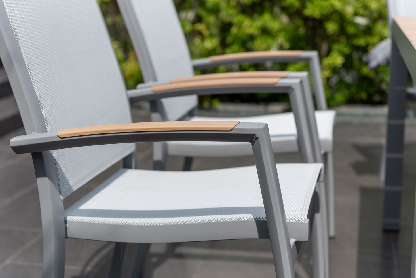 Take your outdoor living to the next level with our Panama stacking armchair, carefully made from aluminium and Weather-net®. Its design is beautifully balanced with a touch of wooden elements in combination with simple style, offering a chair with a comfortable sit that require zero maintenance.