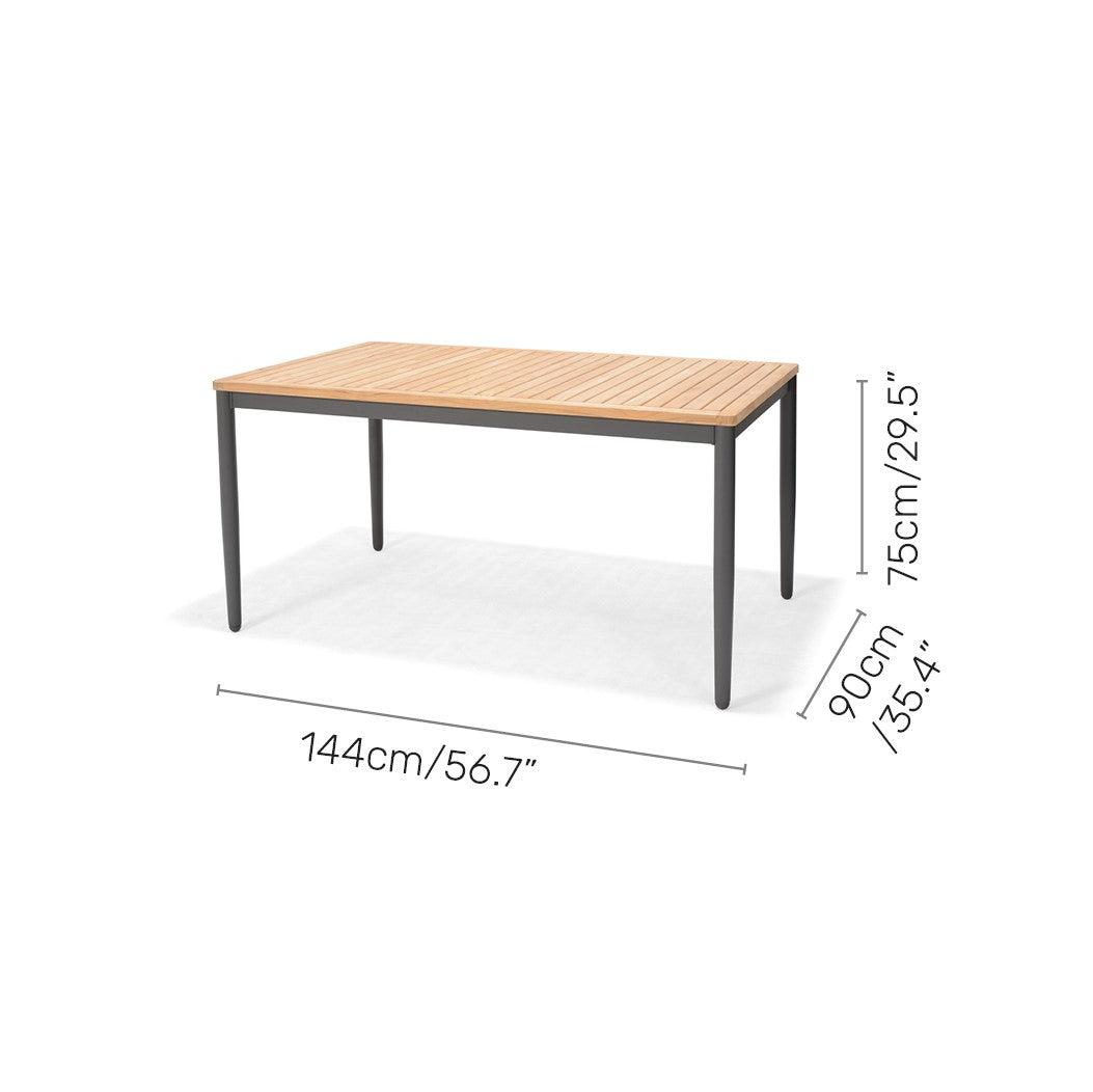 Crafted with a robust and sturdy rust-free aluminum frame, our table can stand against the damaging elements from the outdoor environment for a long time. To accent your outdoor space with a traditional touch, a teak FSC table top is added with warm golden brown that gives off a pleasant atmosphere to every meal.