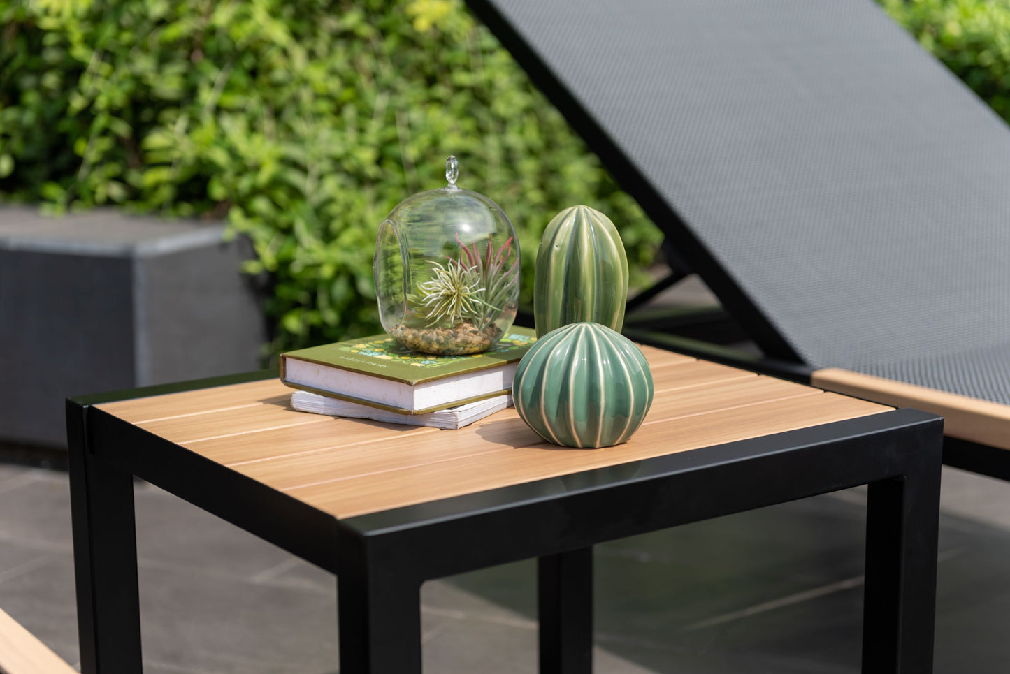 An elegant design merged with a sanded effect and printed wood touch that creates the right atmosphere for any outdoor setting or smaller gatherings. A lounger with unique features, the Panama Dark sun lounger is stacking – making it easy to position to make the most of the sunshine hours, while being ideal for storage during winter, maintenance free.
