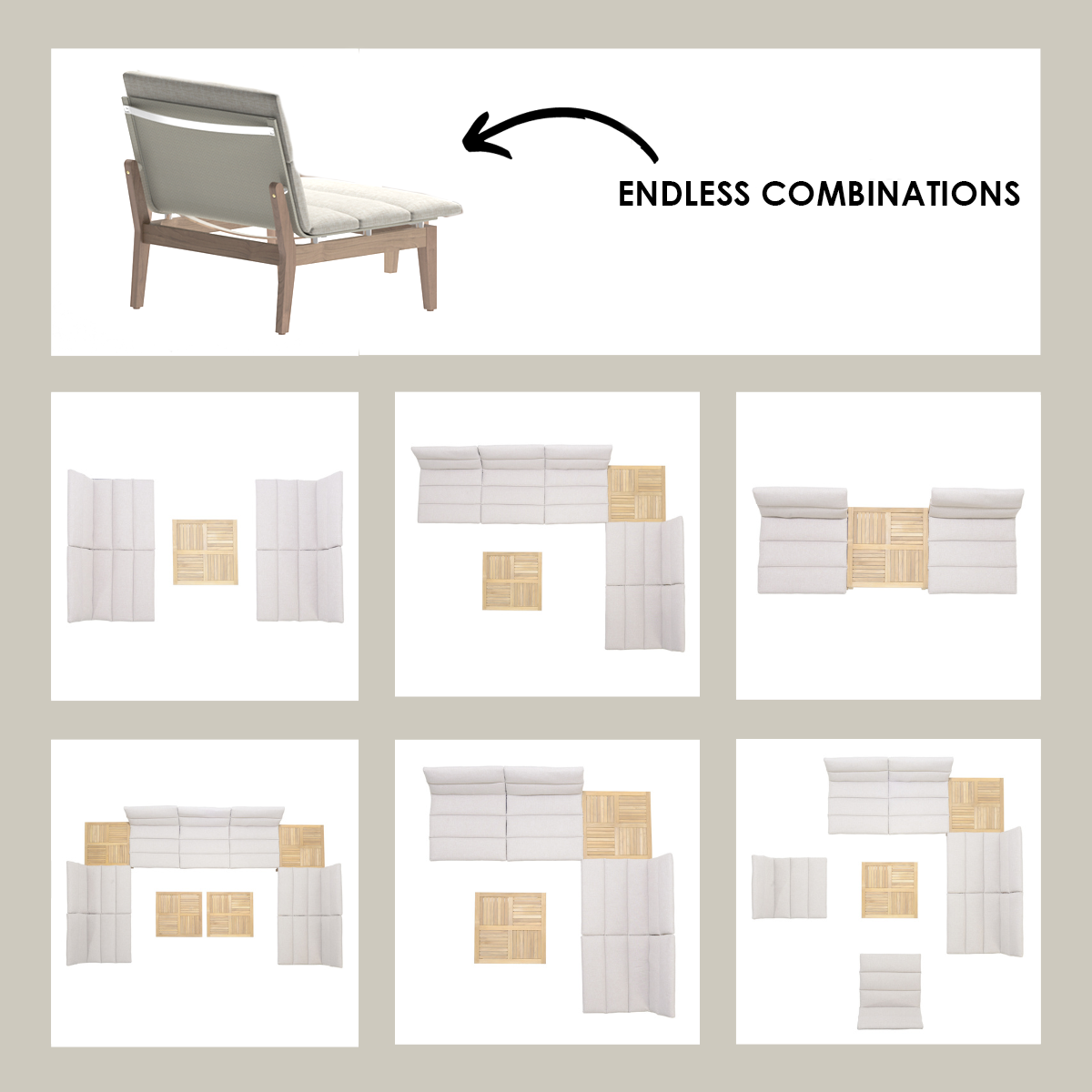Whether for a patio or a balcony, the Arno modular chair is a must-have due to its endless combinations and functionality. Consisting of stunning FSC teak in combination with beautiful coral sanded colour cushion that sets an idyllic atmosphere to your outdoor living, the Arno modular chair is made to provide the comfort you need. Its design is timeless and elegant, and the Arno is great for creating a lounge-like or coffee setup – depending on your needs.